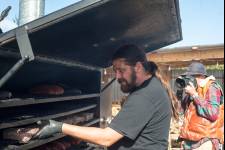 Gästerna hittar honom ofta mitt i verksamheten på innergården där kött av olika slag tillagas långsamt och med omsorg i en så kallad smoker – som närmast kan översättas som rök på svenska. För att få rätt temperatur börjar Johan elda ett par timmar innan köttet läggs in. Veden är alltid från lövträd, oftast ek.